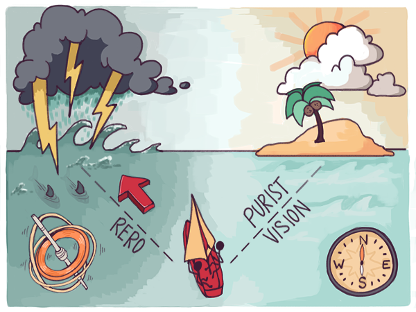 This tendency makes no sense within waterfall models, but is a necessary feature of agile models. The only way for execution to track the changing direction of the rough consensus as it pivots is to increase the frequency of releases. Failed experiments can be abandoned earlier, with lower sunk costs. Successful ones can migrate into the product as fast as hidden risks can be squeezed out. As a result, a lightweight sense of direction -- rough consensus -- is enough. There is no need to navigate by an increasingly unattainable utopian vision.